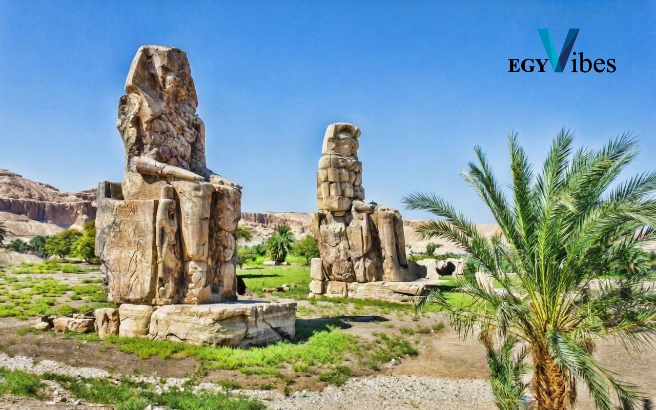 Dopo, attraverseremo il Nilo in barca per andare sulla riva ovest, dove vedremo i famosi Colossi di Memnone, due statue enormi alte 18 metri e pesanti più di 700 tonnellate ciascuna.