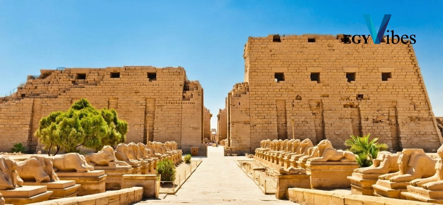 Per iniziare, andremo all’enorme Tempio di Karnak, uno dei complessi di templi più grandi del mondo. Lì vedremo: